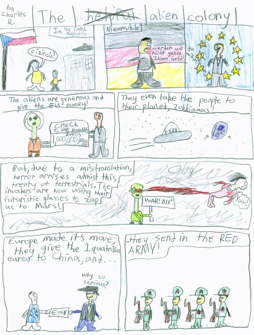 Lately we have been discussing the economic crisis in Europe and my 11-year-old drew a cartoon that he feels is an approach as sensible as any that are being proposed by the "experts" in Europe.